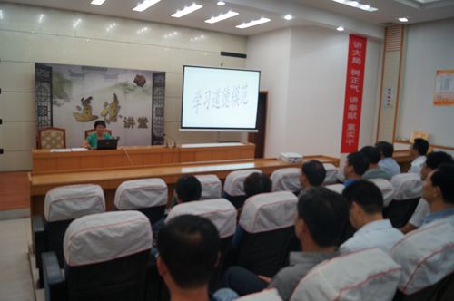 ? ?加强道德讲堂建设是积极培育和践行社会主义核心价值观、深化精神文明建设的重要举措,是提高社会文明程度和公民思想道德素质的有效载体。市教育局对全市教育系统道德讲坛建设高度重视。一是加强体制机制建设。成立了以局长为组长的道德讲堂建设领导小组,制定了局机关开展道德讲堂的实施方案,每年年初制定机关“道德讲堂”活动计划,确保道德讲堂实施有制度、有落实、有监督。二是加强道德讲堂软件硬件建设。对市教育局会议室进行改造,设立了可以容纳140人的道德讲堂一个,制作了6个道德讲堂制度版面,4个道德讲堂文化版面,明确一名专职人员负责道德讲堂有关设施的维护,确保道德讲堂有场所、有设施、有制度、有人员。三是丰富道德讲堂内容。结合教育特色,围绕师德建设、提高职业素养、提升教育质量、关爱留守儿童、实施爱的教育、爱岗敬业等主题精心设计道德讲堂内容,坚持每季度至少开展2次道德讲堂,广大教职员工积极参与。
