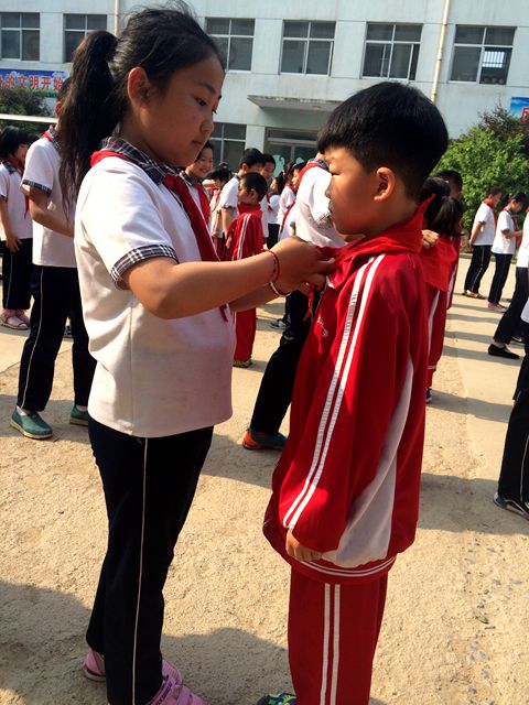 2017年6月1日,农高区杨庄镇太和小学少先队举行一年级队员入队仪式。通过这次活动引导队员们继承和弘扬少先队的光荣传统,增强少先队员的光荣感和自豪感,同时也展示了新时期我校少先队员乐观、积极向上的精神风貌。 仪式在熟悉而亲切的出旗曲中拉开序幕,由李一鸣老师宣读新入队队员名单,随后,三四年级的老队员为新队员佩戴了红领巾。面对队旗,新、老队员代表分别发言,他们声情并茂,表达出做为一名少先队员,当以严格的标准规范自己的行为,努力学习,团结协作,牢记自己的光荣使命,做合格的党的接班人。燕瑜校长对新队员提出祝贺并作出希望,希望孩子们好好学习,好好锻炼,学会做人,学会生存,拥有一颗感恩的心,为胸前的红领巾增光添彩。最后,全体新入队的同学在庄严的队旗下,高高地举起右手大声宣誓,时刻准备着为共产主义事业而奋斗! 整个入队仪式规范而且隆重,洋溢着浓浓的温暖之情,孩子们无比幸福和自豪的眼神告诉我们,他们定会在星星火炬的指引下,牢记党的教诲,全面发展,茁壮成长。??